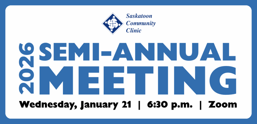 Snacks and materials provided. No cost to attend. For Saskatoon Community Clinic patients and members only.